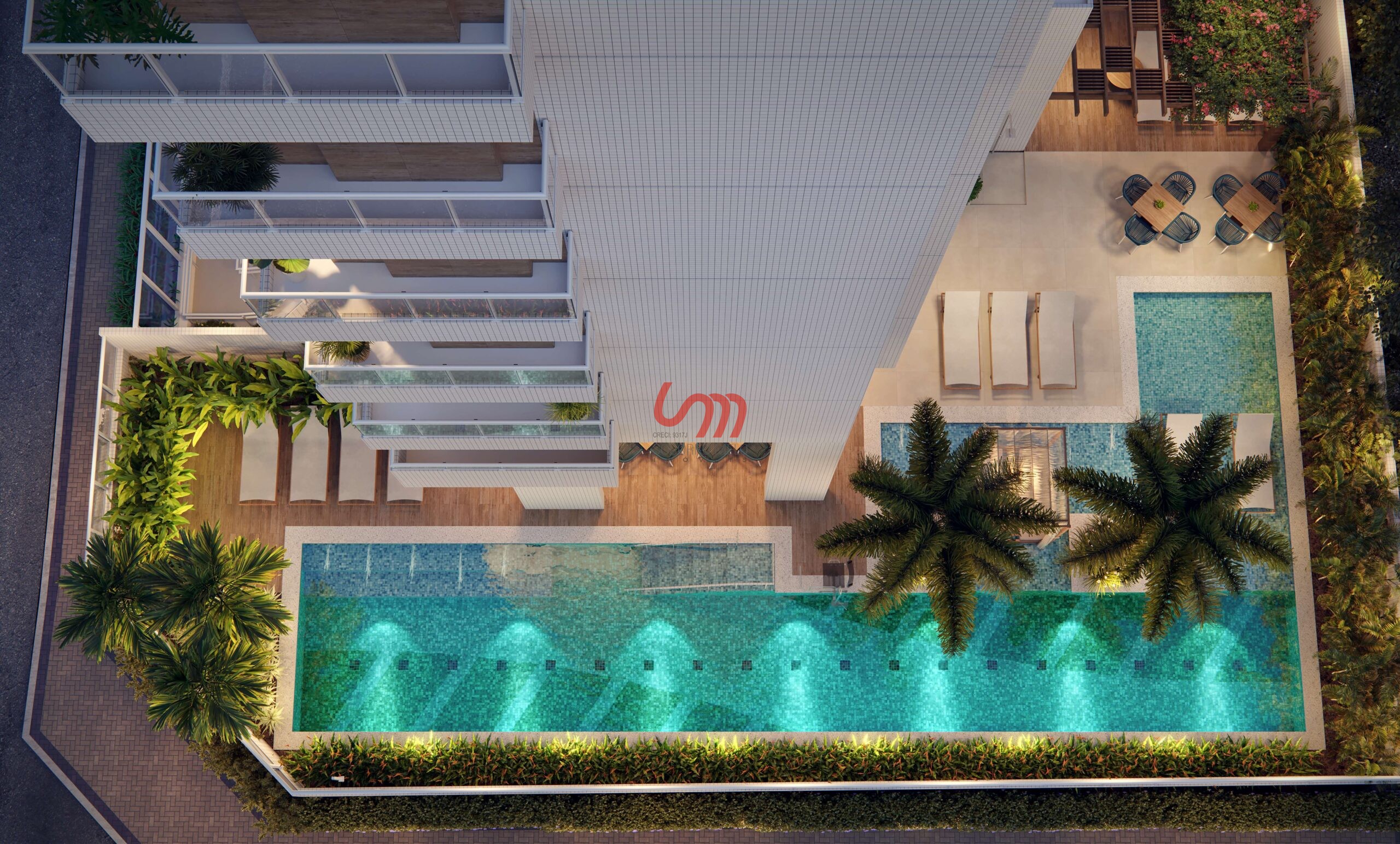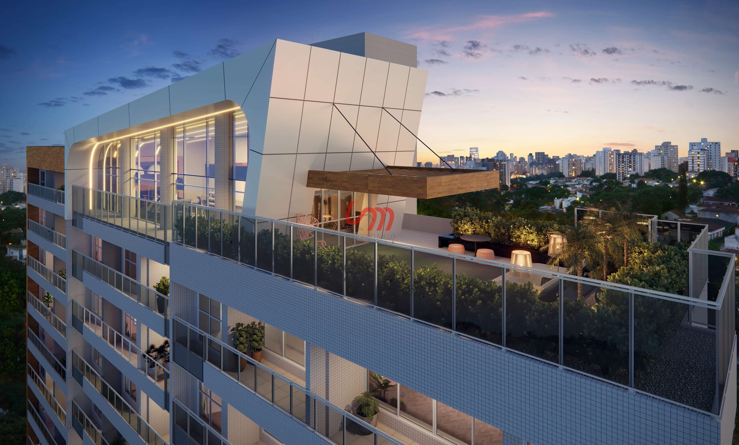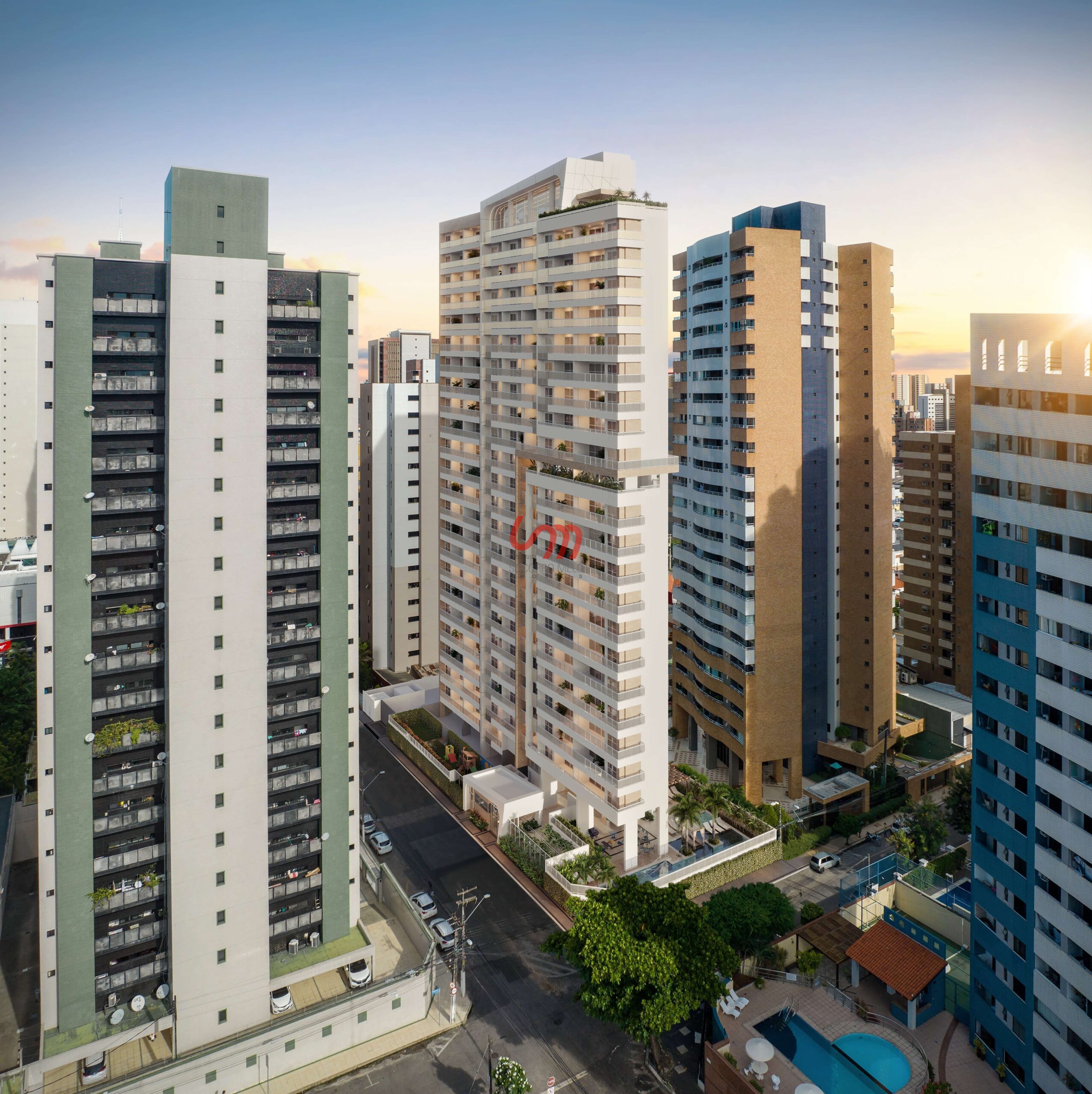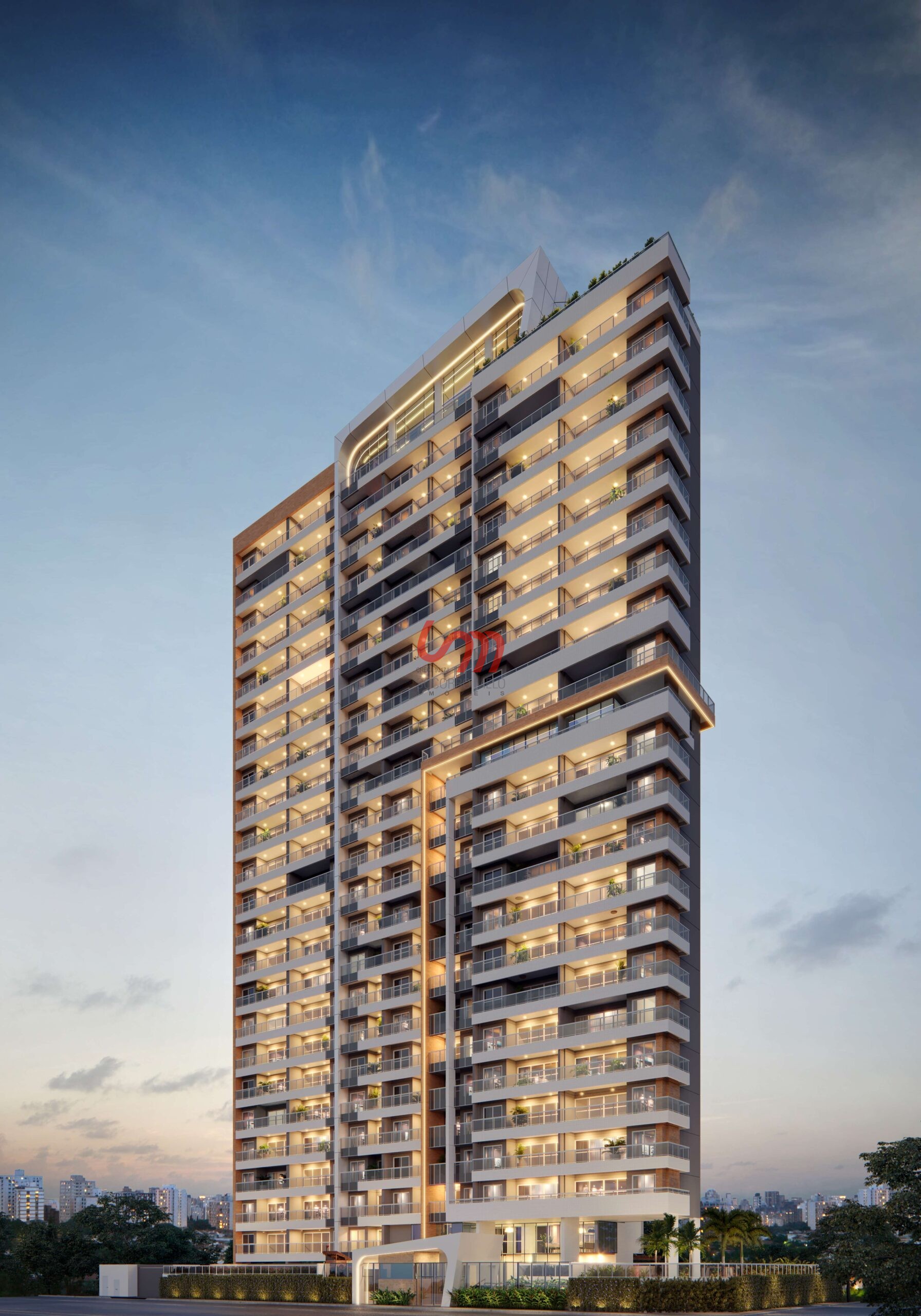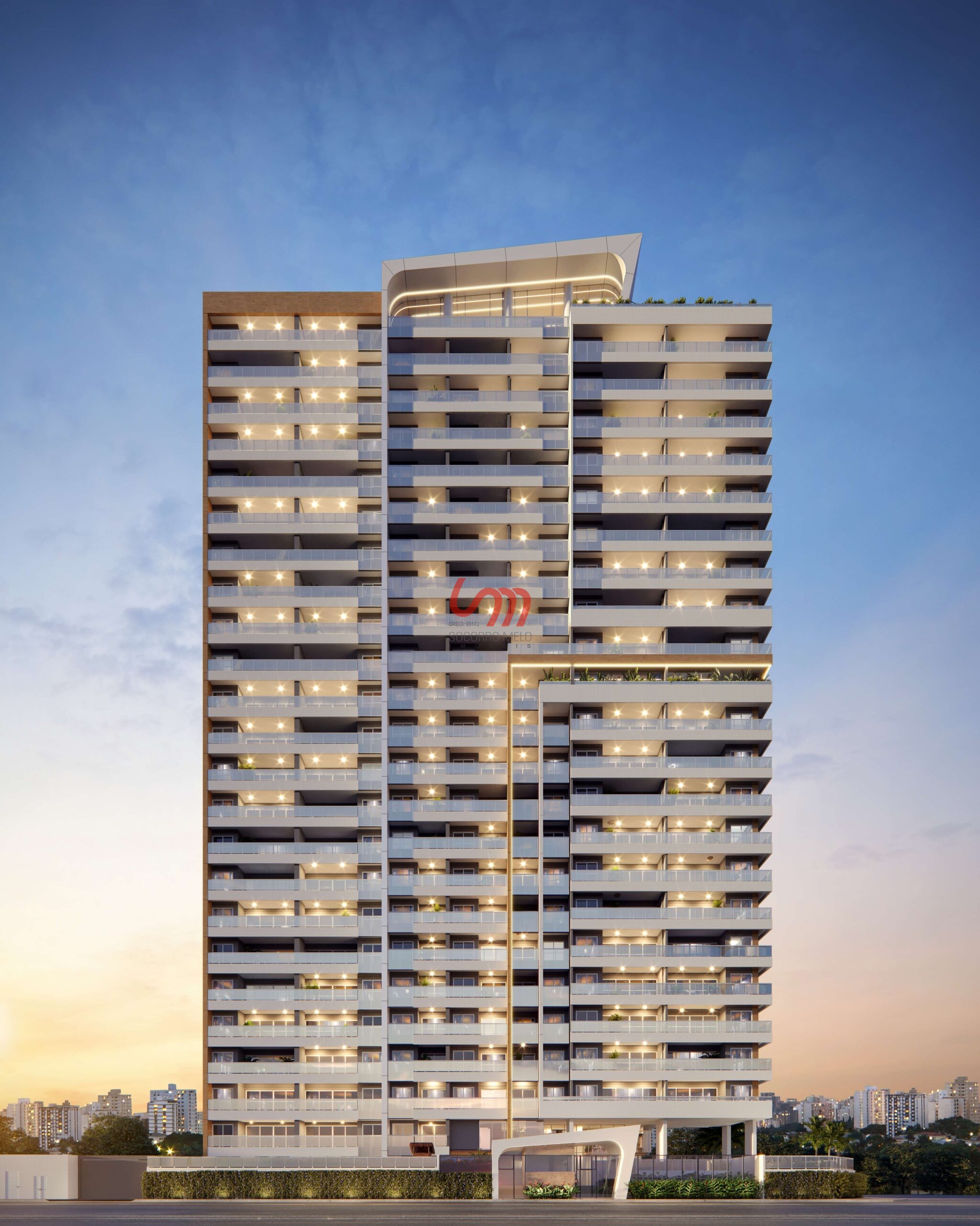 Pavimentos: 29 sendo 04 (Subsolos) + 01 (Térreo) + 01 (Mezanino/Lazer) + 01 (Lazer no 13º Andar) + 01 (Lazer no 23º Andar) + 20 (Tipo) + 02 (Cobertura / Casa de Maquinas)